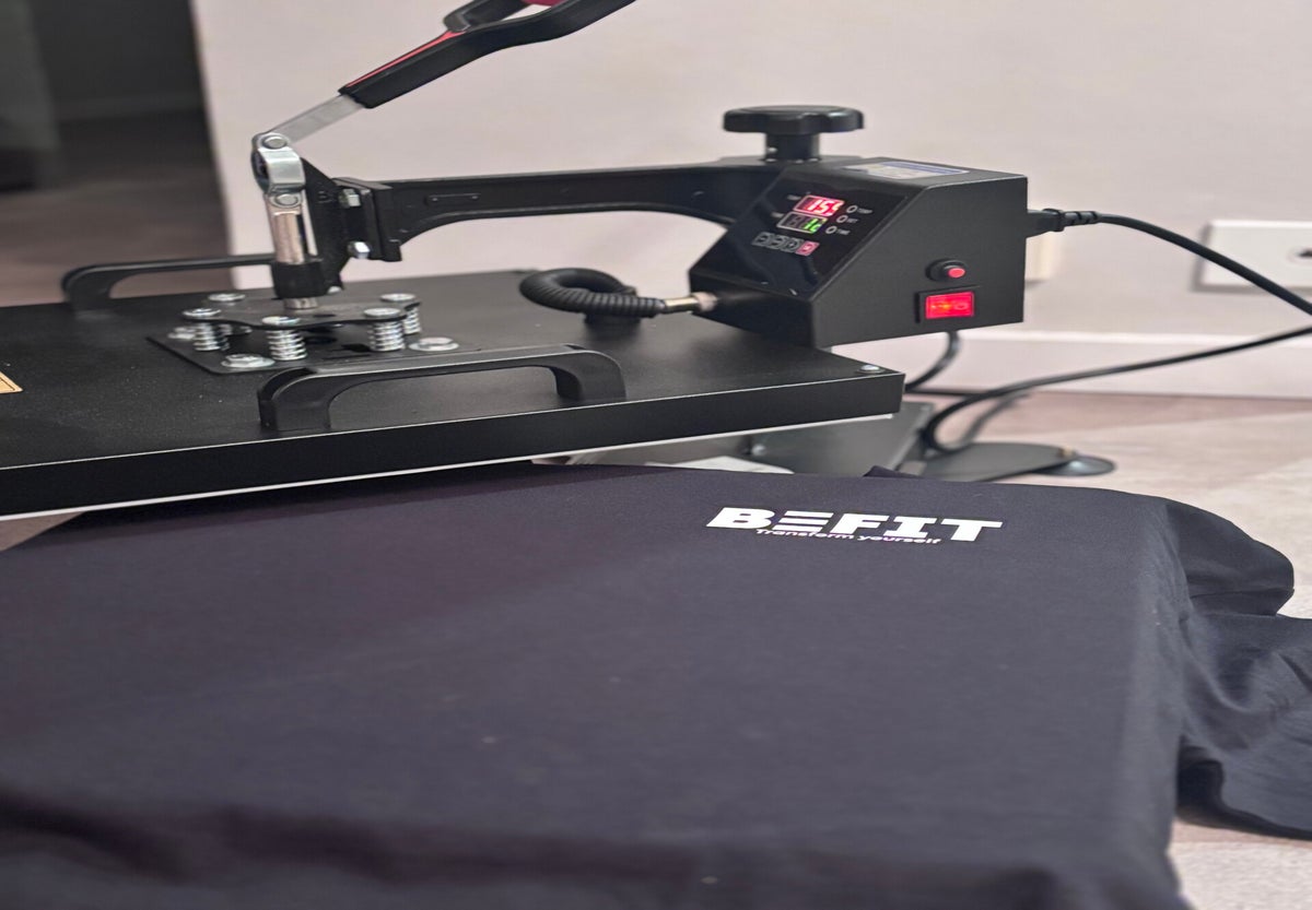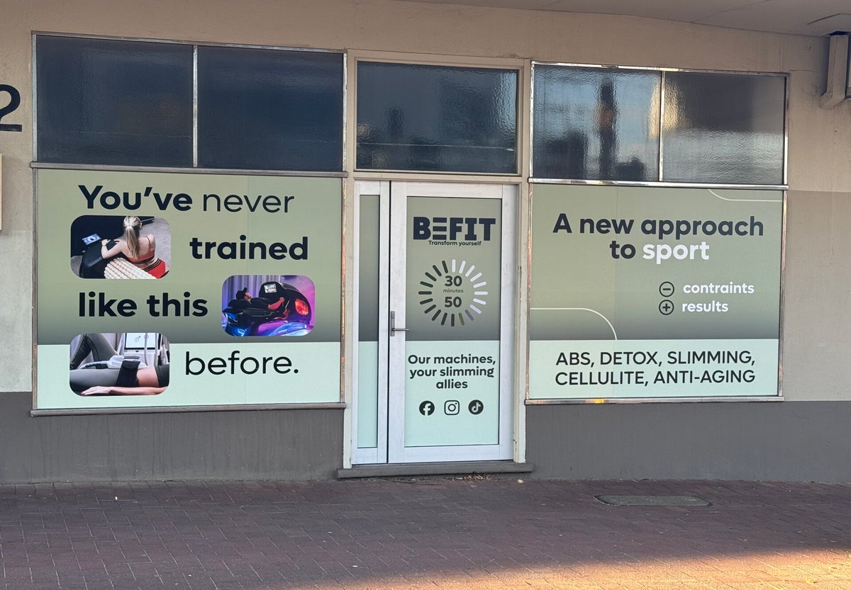 Production and installation of the signage, window graphics, A-frame and T-shirts for Befit. We selected long-term polymeric vinyl to cover areas where the machines are located, providing privacy for their clients. For the reception and coffee areas, we used cut vinyl to maintain visibility while preserving natural light.